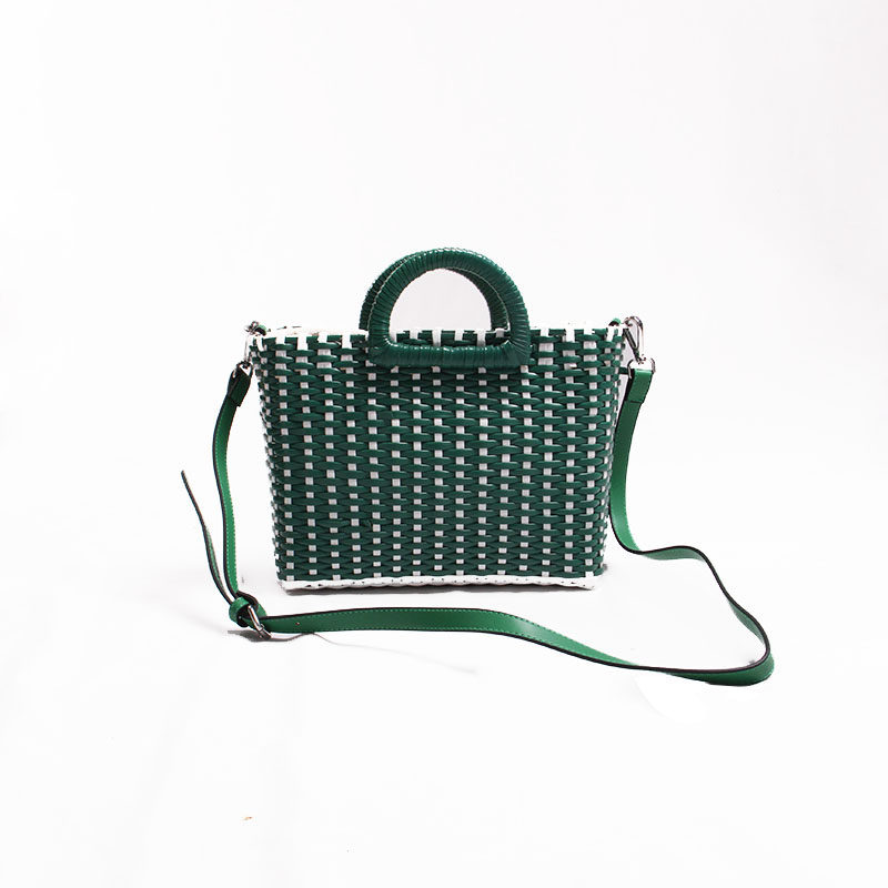 北欧優美デザイン手編みかご素材のバッグ