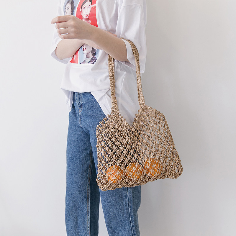 カジュアルな夏のお出かけに映える、実用的なあみのバッグです。