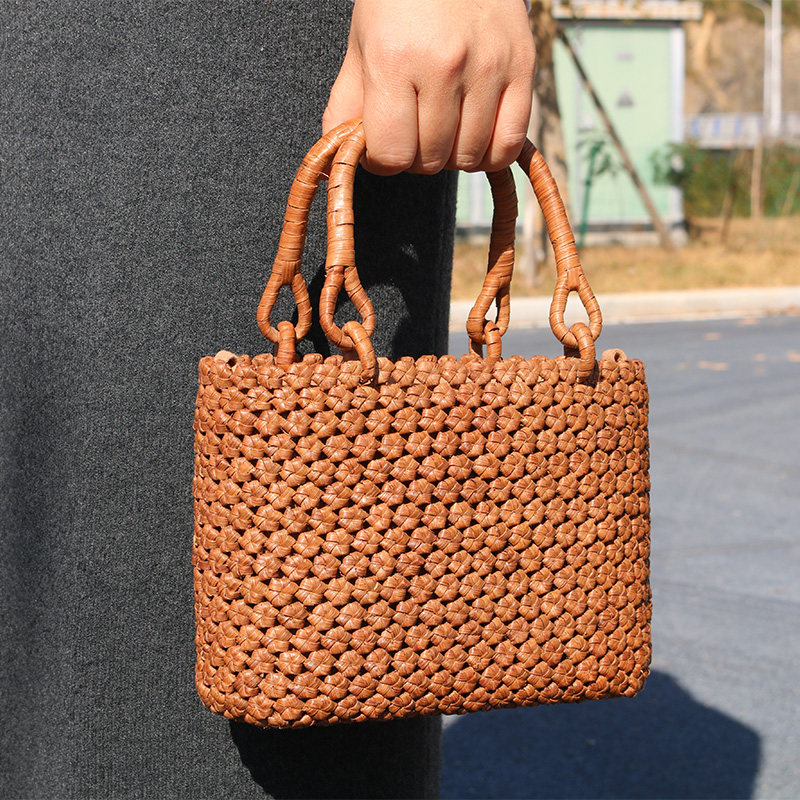 丁寧に編み込まれた天然素材のハンドバッグ型カゴバッグです。