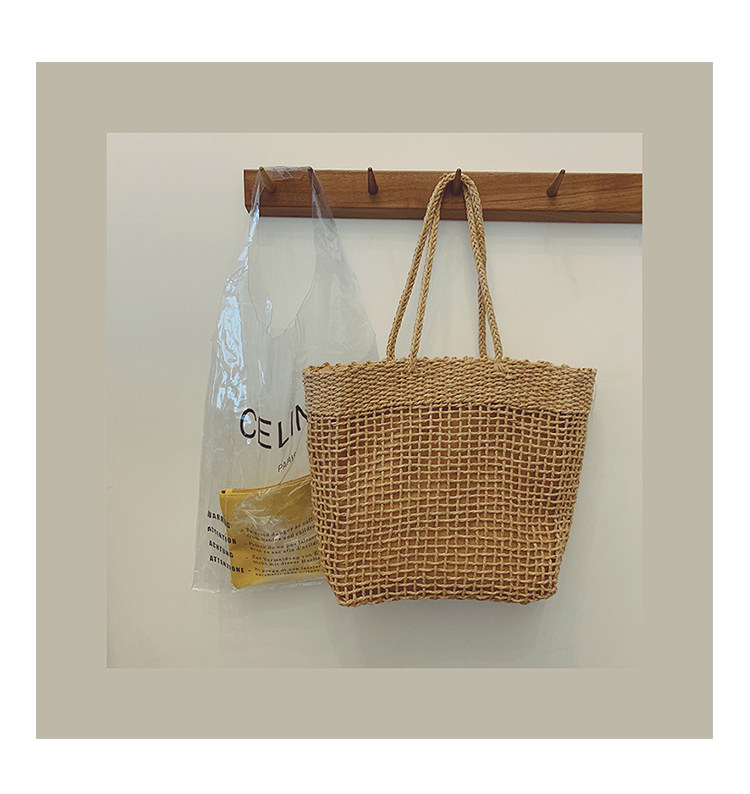 涼しげな透かし編みが魅力的なトート型のカゴバッグです。 天然素材を丁寧に編み上げた網目デザインが軽やかで、夏のお出かけにぴったりです。 肩掛け可能な長めの持ち手で使い勝手も抜群です。 雑誌やペットボトルもしっかり収納できる実用性の高さも魅力です。 お買い物や海辺のお散歩など、様々なシーンで活躍するカゴバッグです。