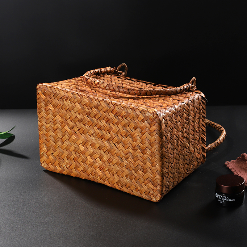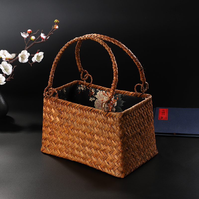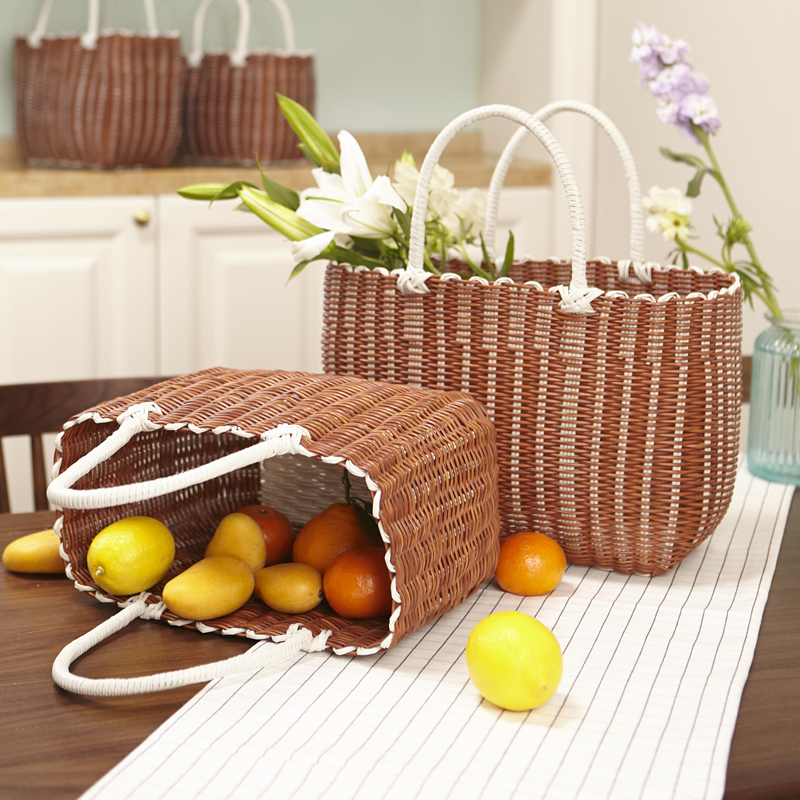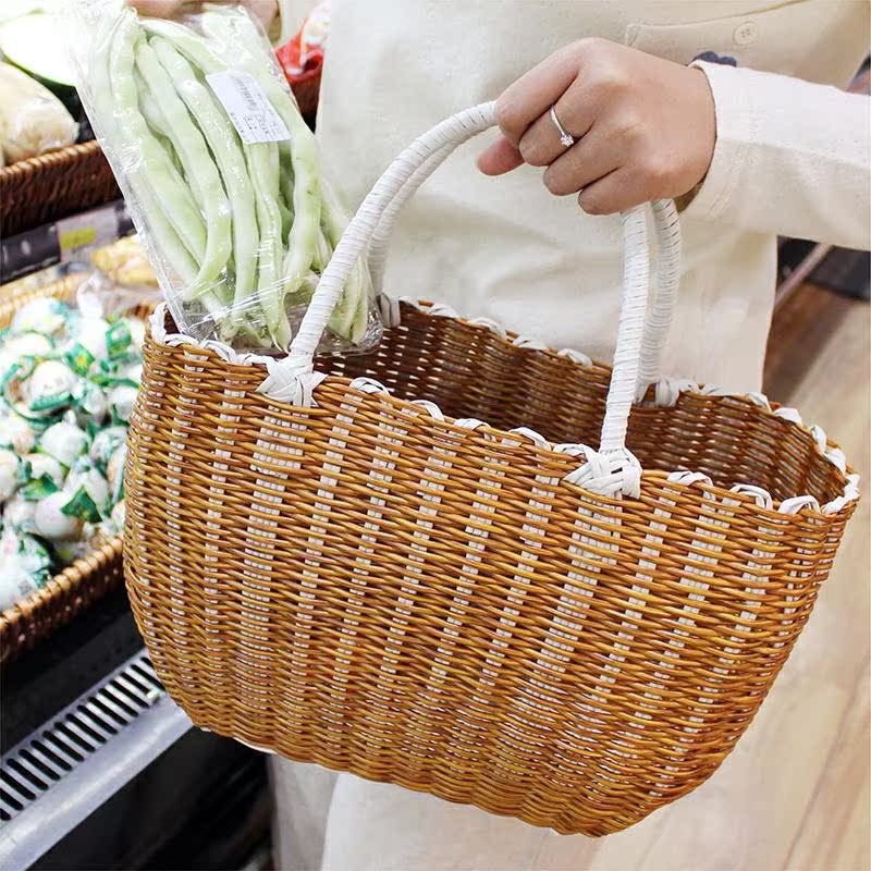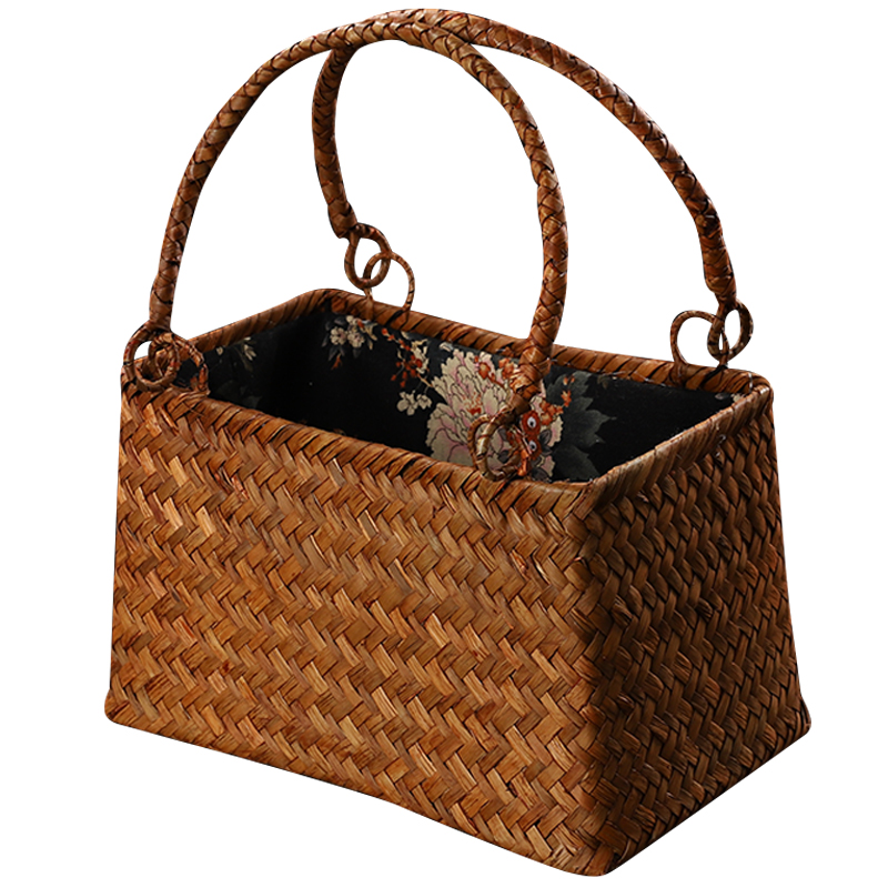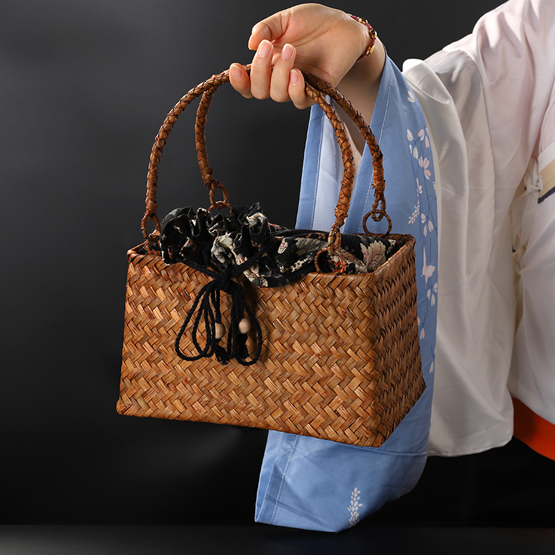 自然な風合いが魅力的な天然素材を丁寧に編み込んだカゴバッグです。 持ちやすい持ち手が付いたハンドバッグ型で、日常の買い物やお出かけに最適なサイズ感を実現しました。 通気性に優れた編み目構造により、野菜や果物などの食材保存にも適しています。 しっかりとした作りで耐久性があり、長くご愛用いただける実用的なアイテムです。