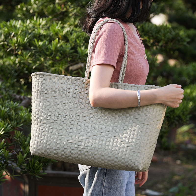 熟練職人が丁寧に編み上げた斜め編み模様が特徴的なトート型のカゴバッグです。