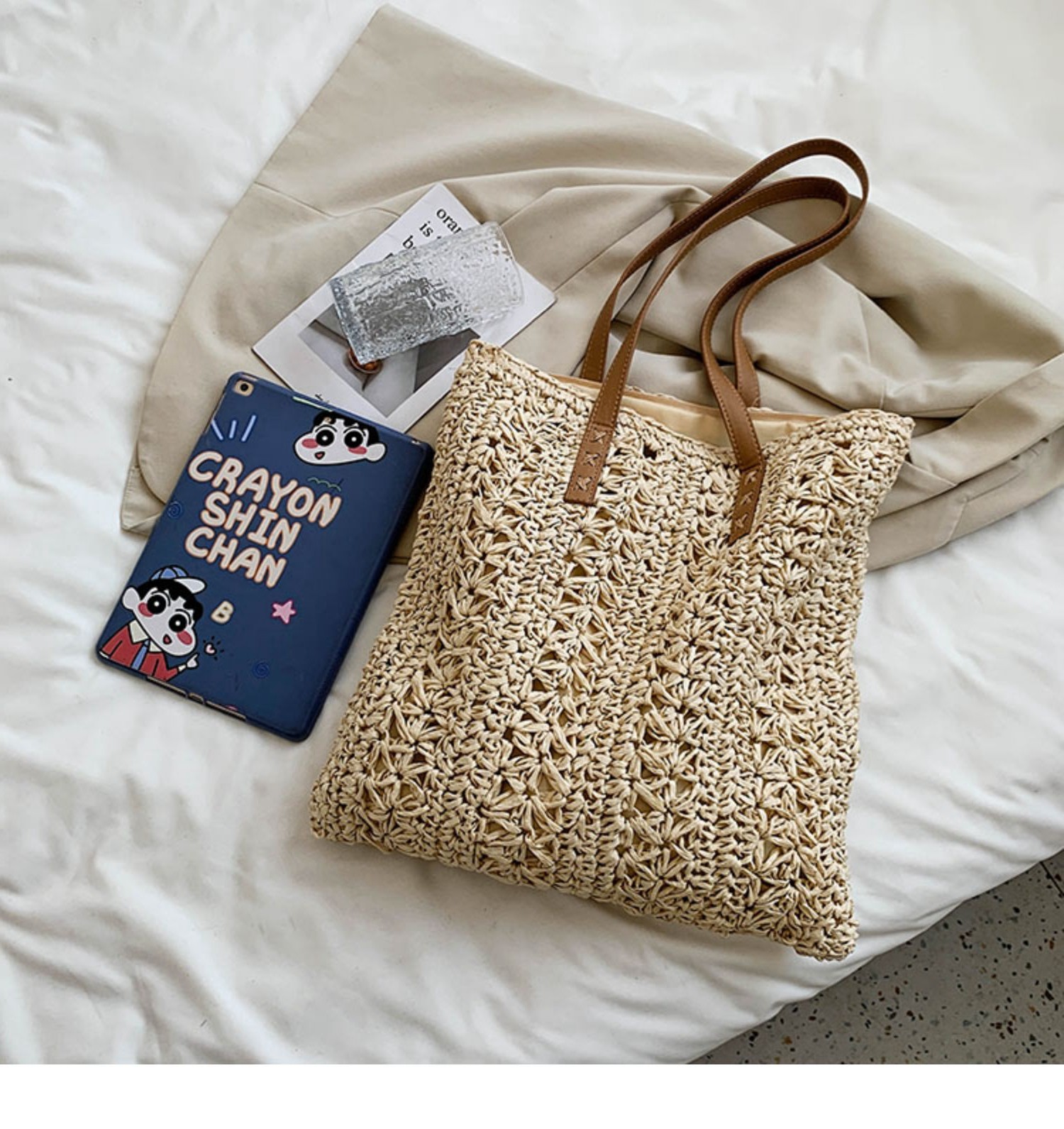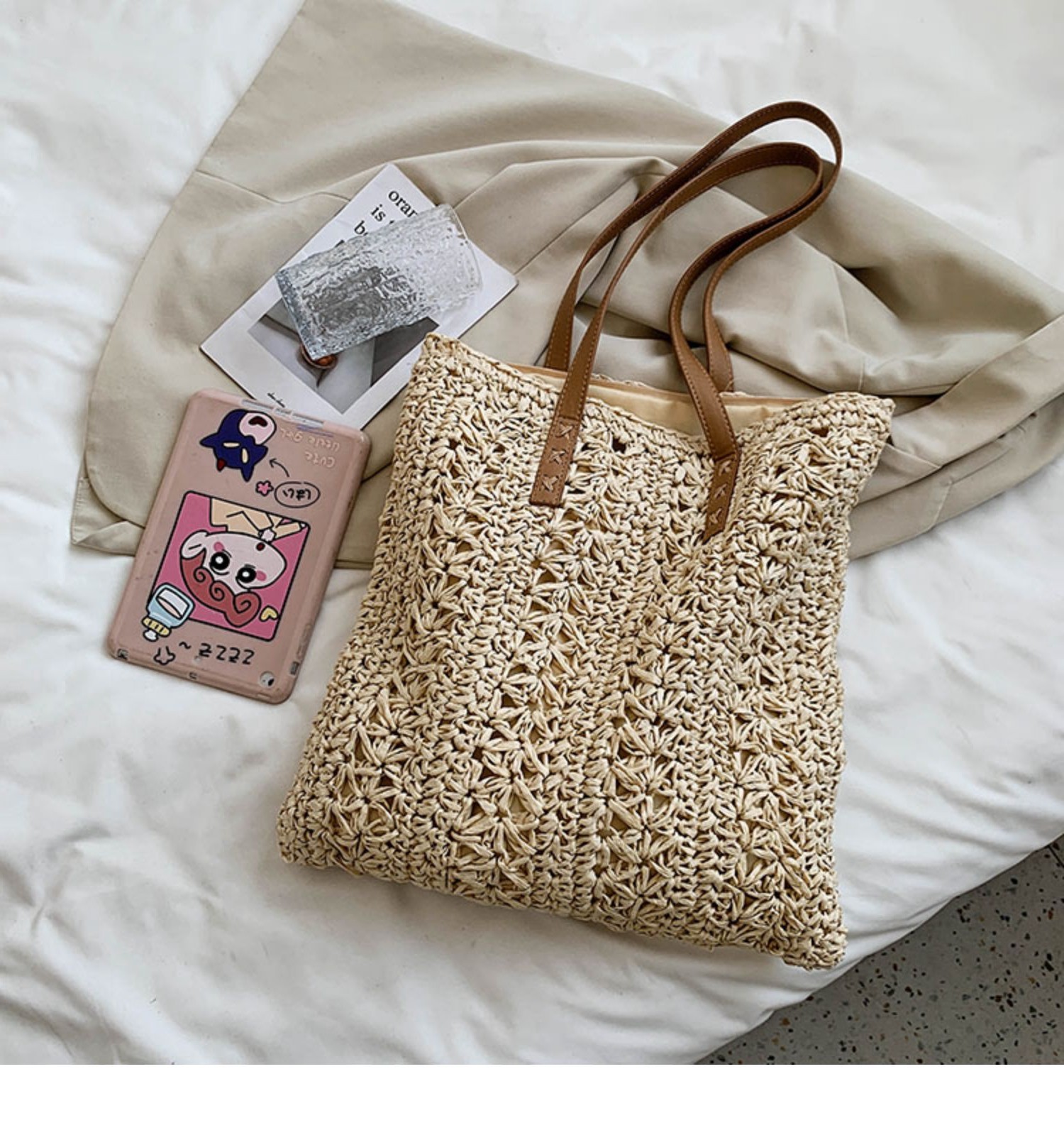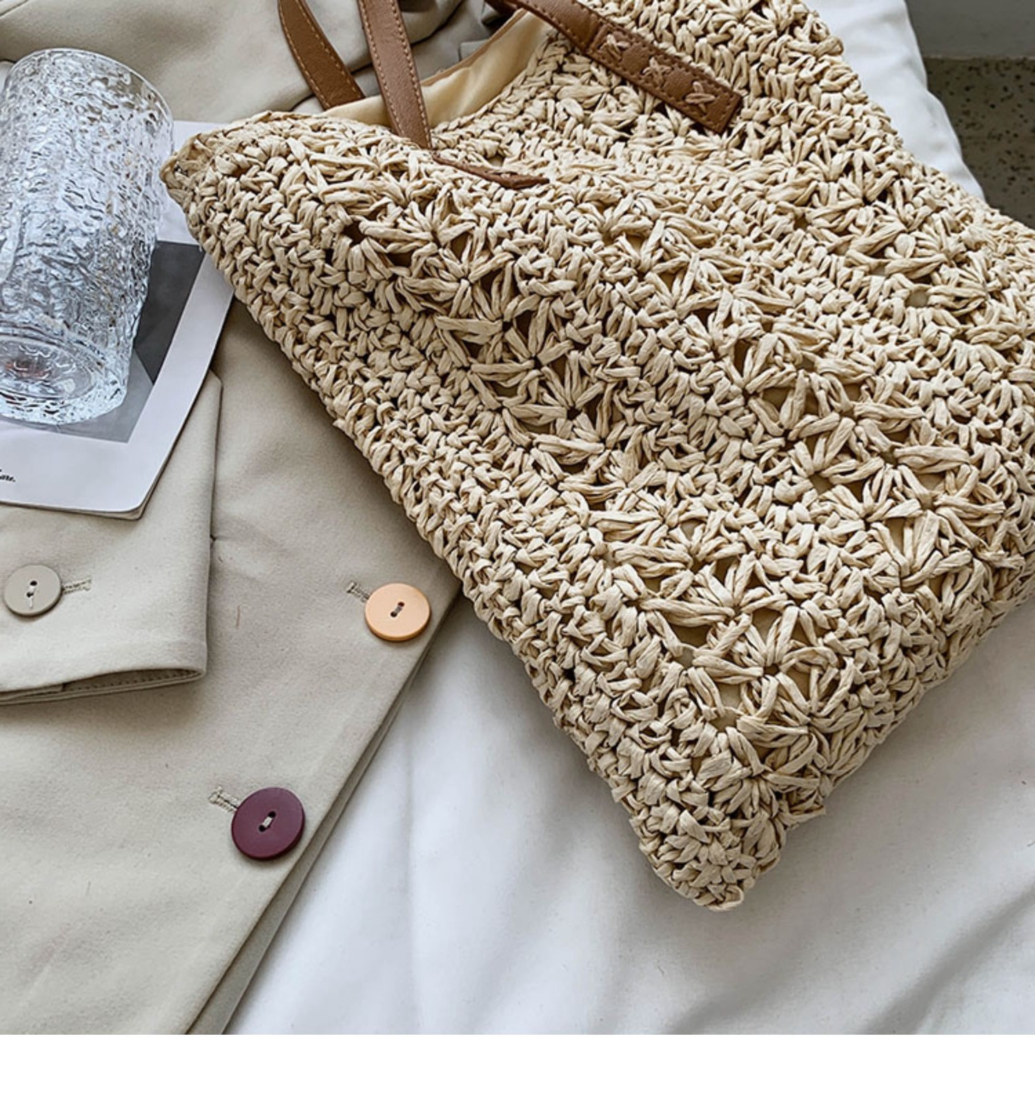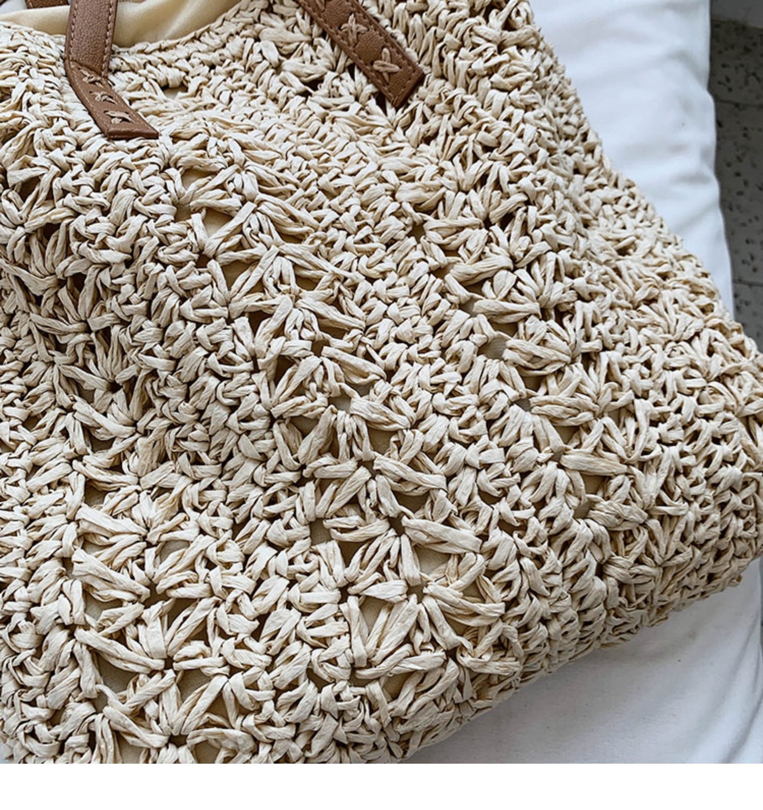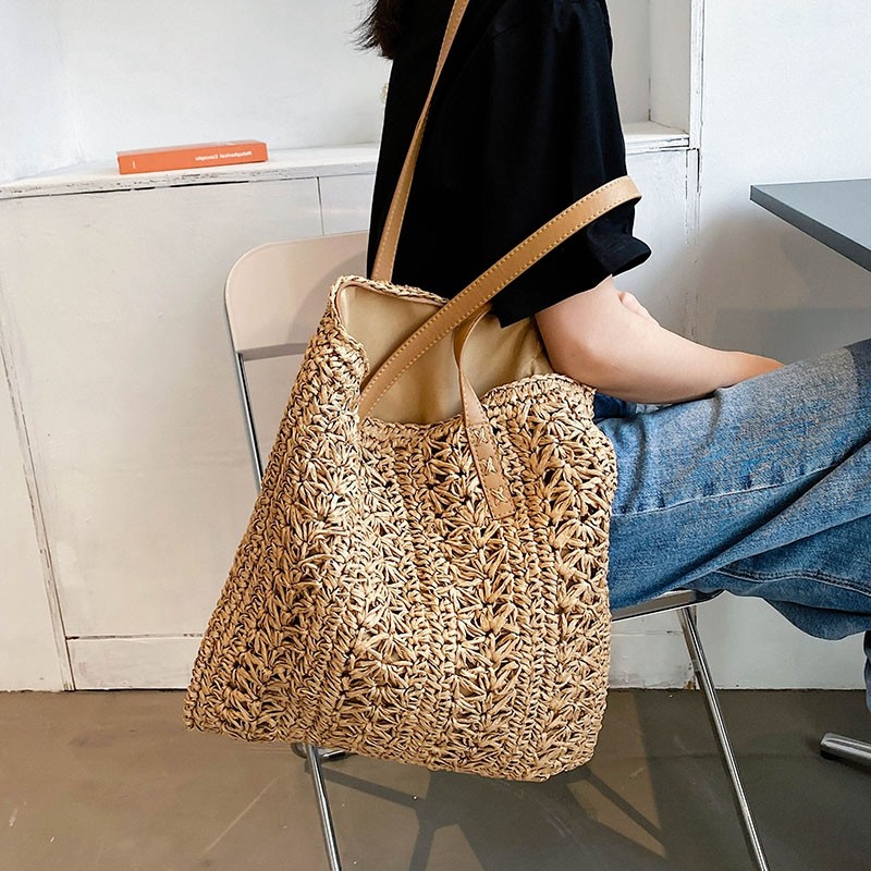 天然素材を使用した立体的な編み地が特徴で、軽量ながらもしっかりとした作りになっています。