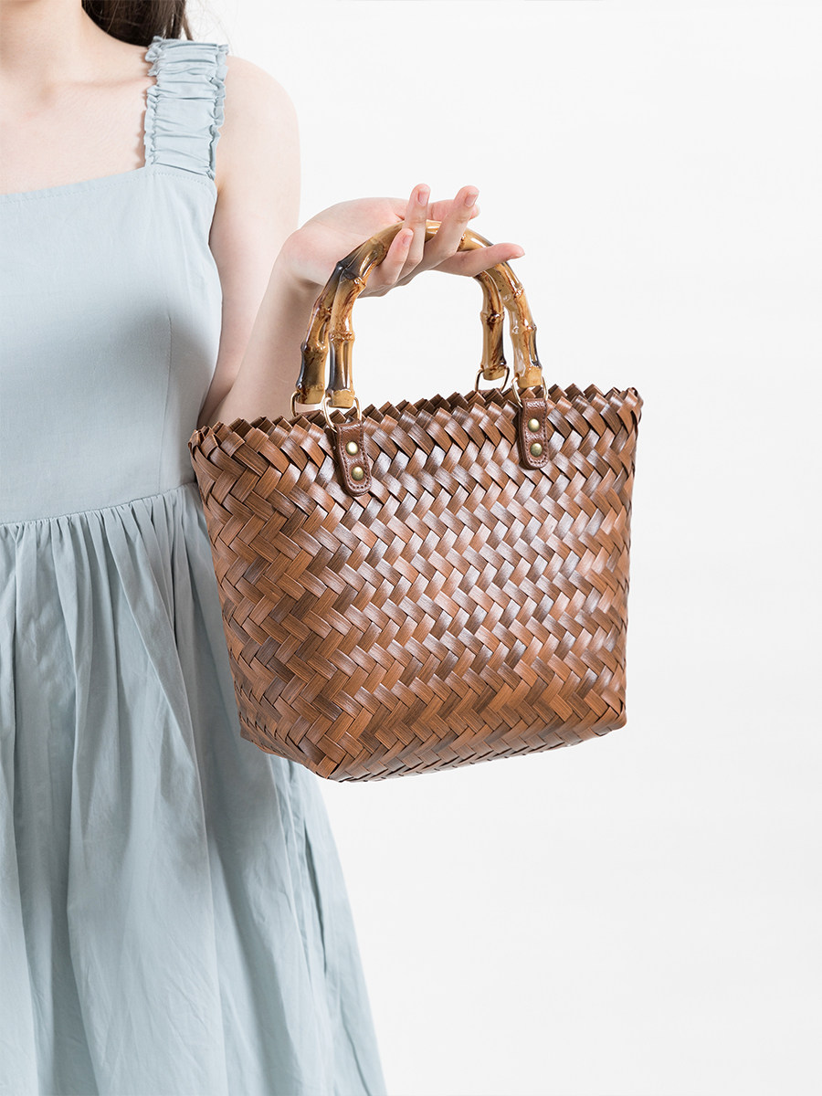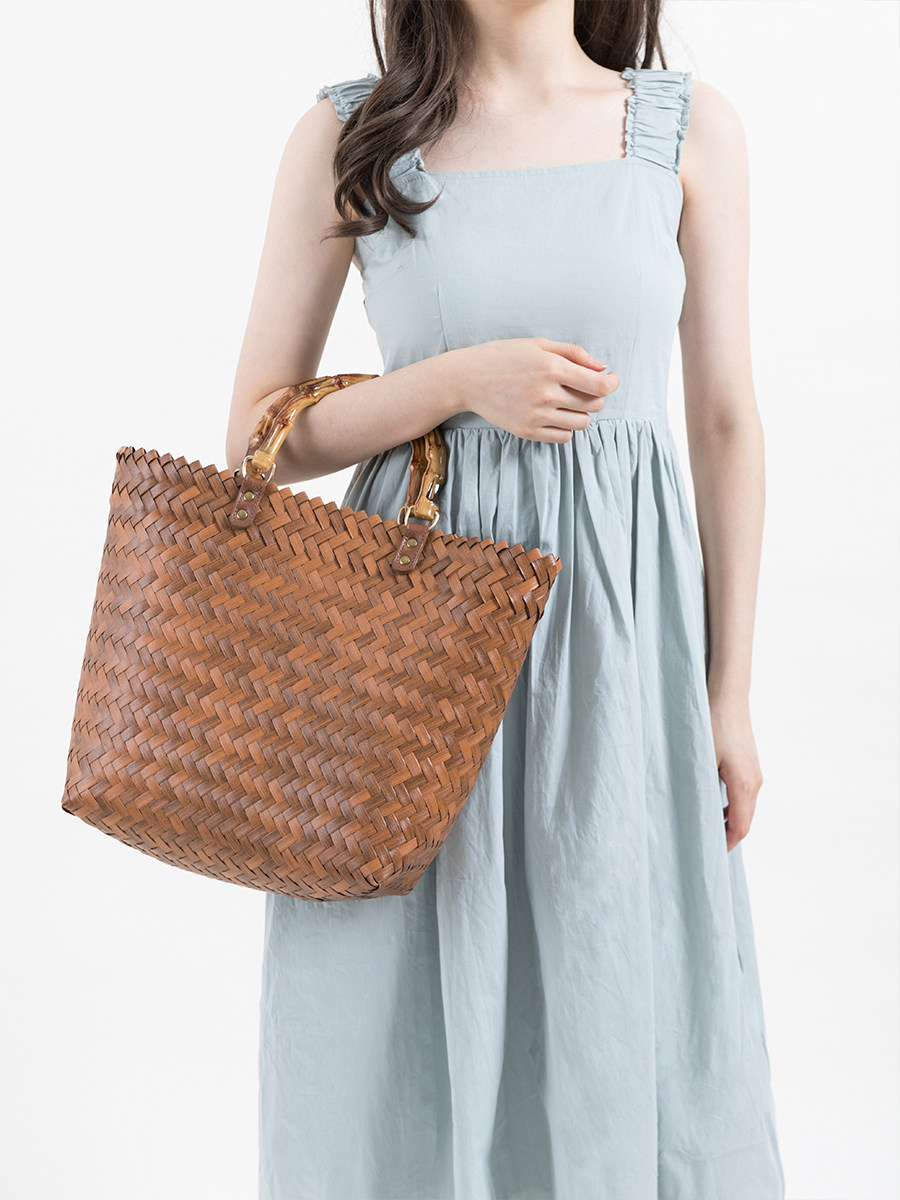 天然素材の風合いを活かした網代編みが美しく、カジュアルからきれいめまで幅広い装いに合わせられます。