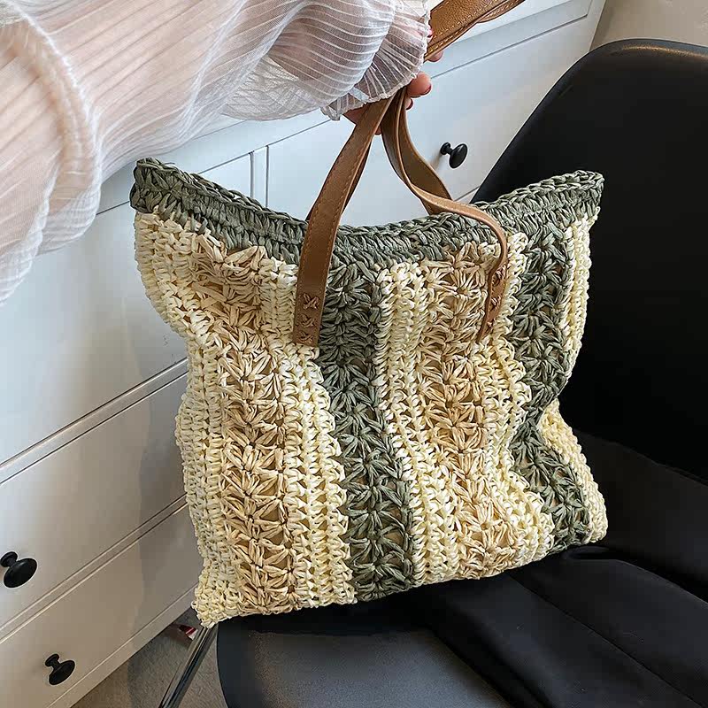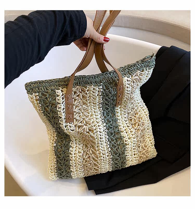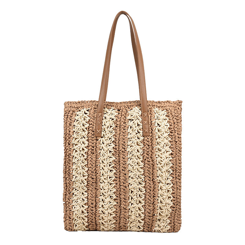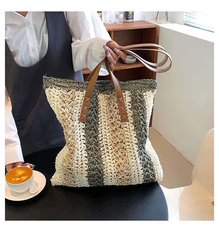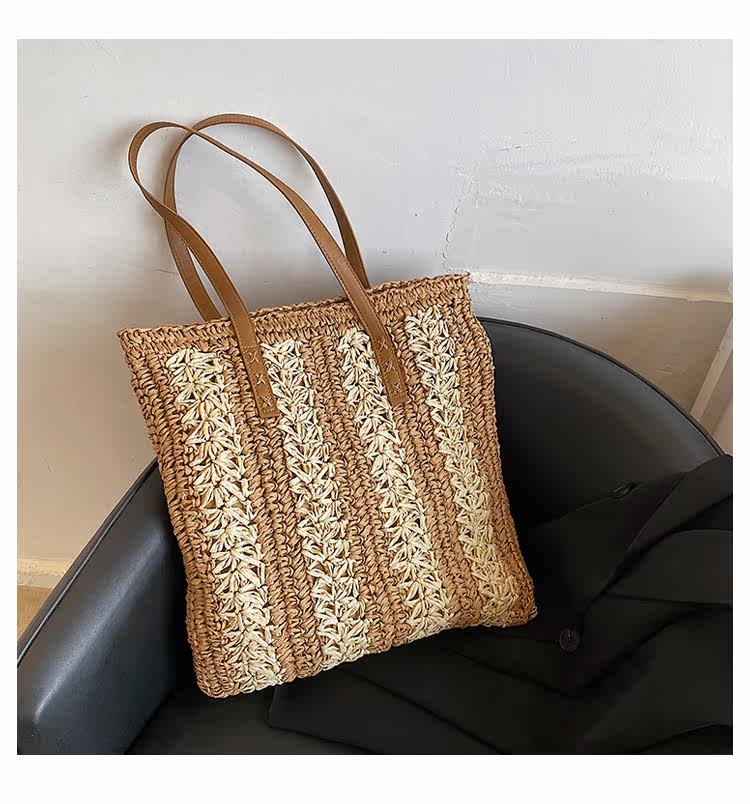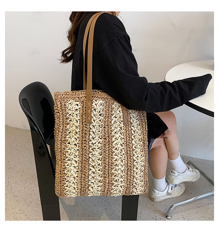 縦縞状に編み込まれた二色の素材が、シンプルながらも洗練された印象を演出します。