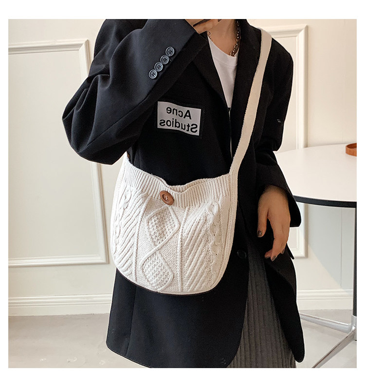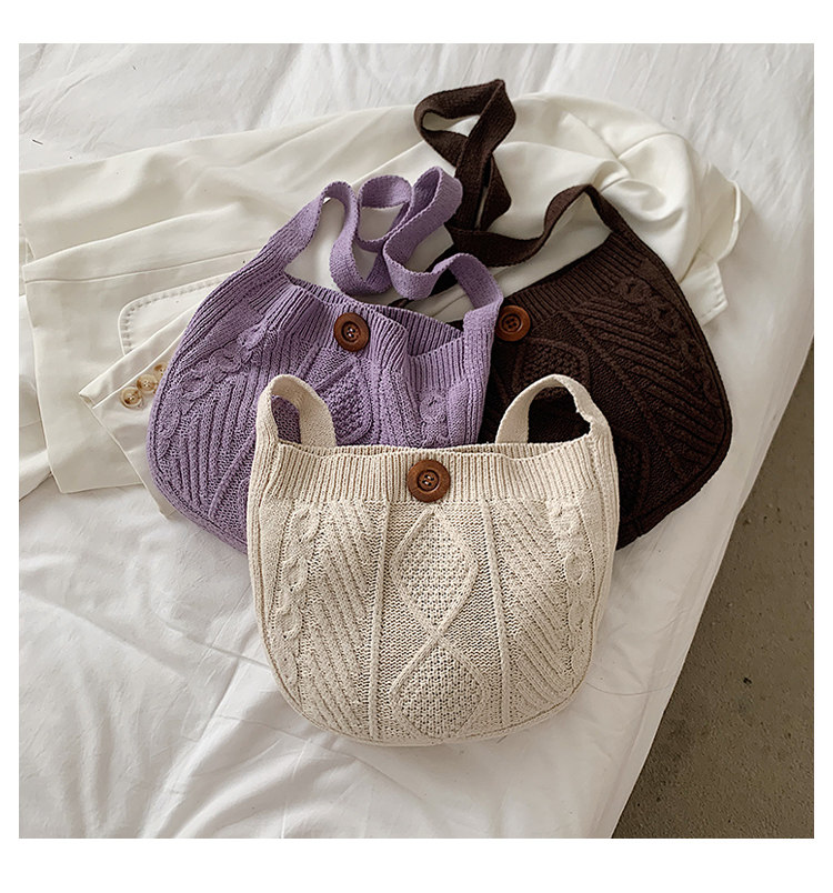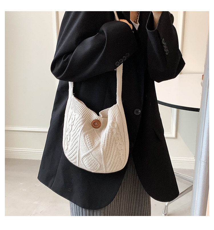 温かみのあるケーブル編みが特徴的なカゴバッグのショルダー型です。