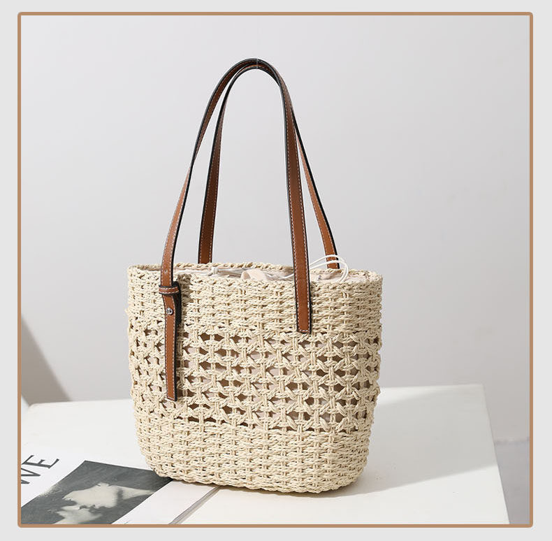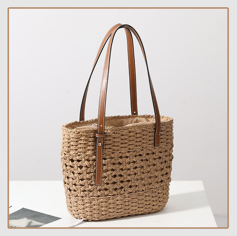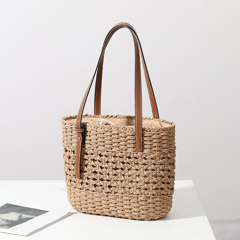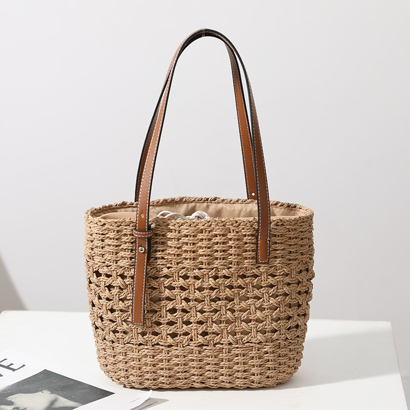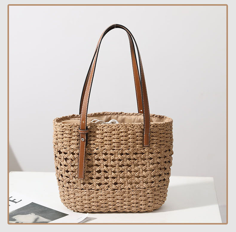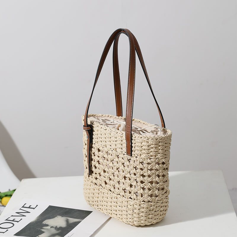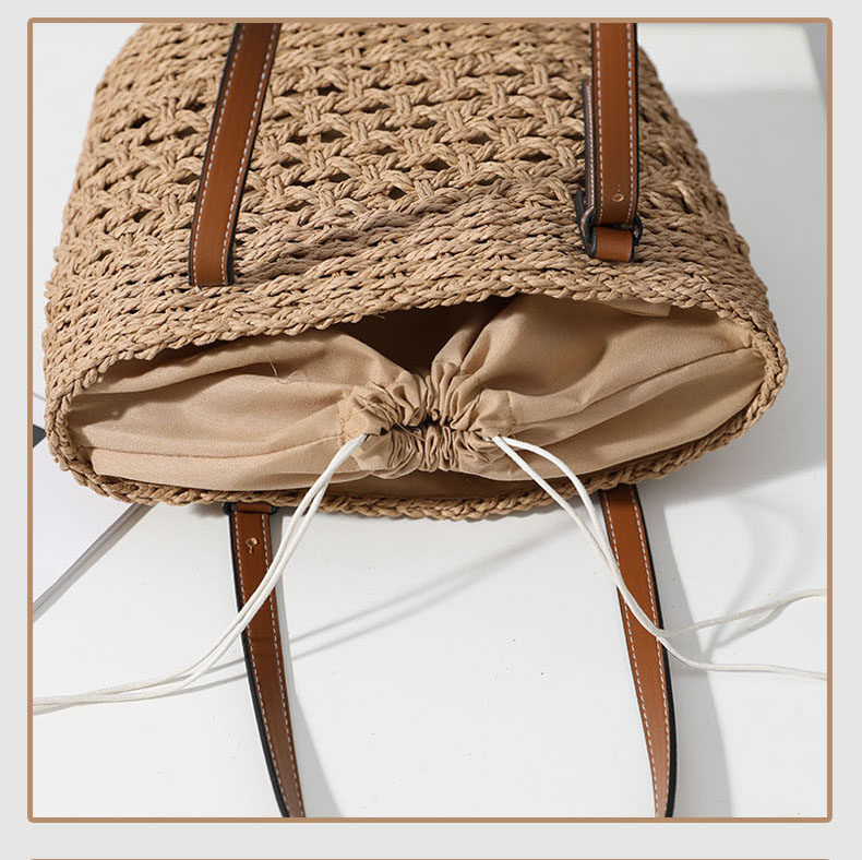 ラフィア草の丁寧な編み込みが、ナチュラルで洗練された雰囲気を演出