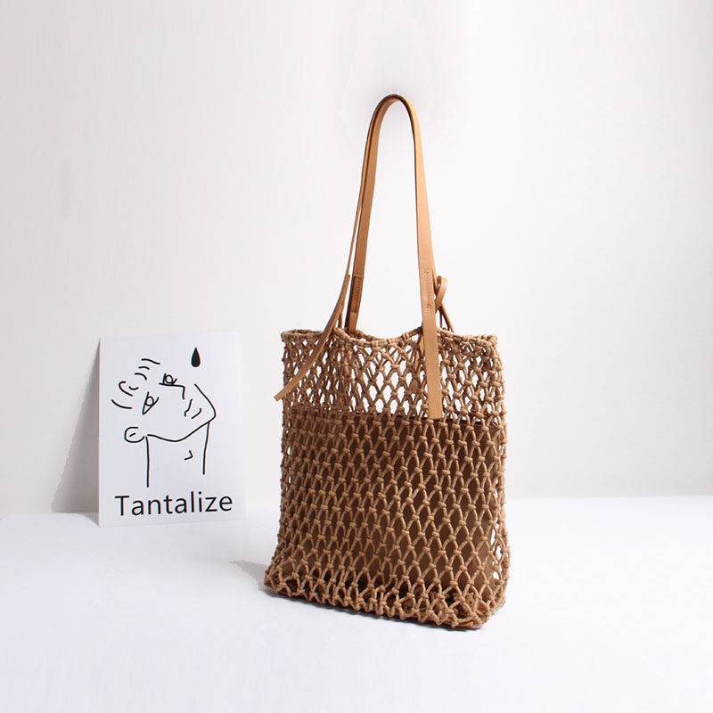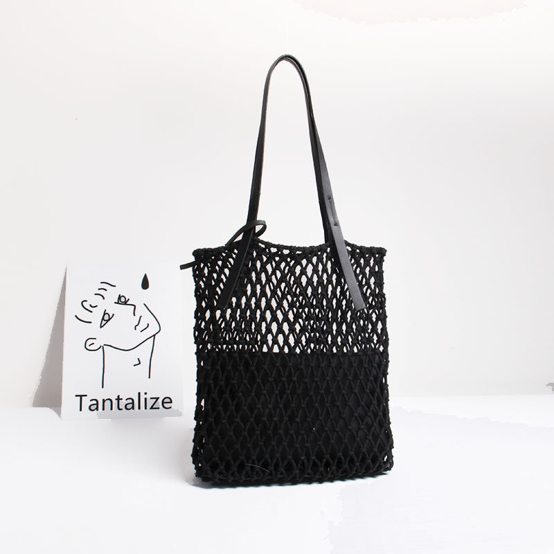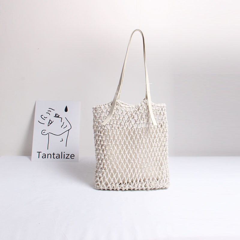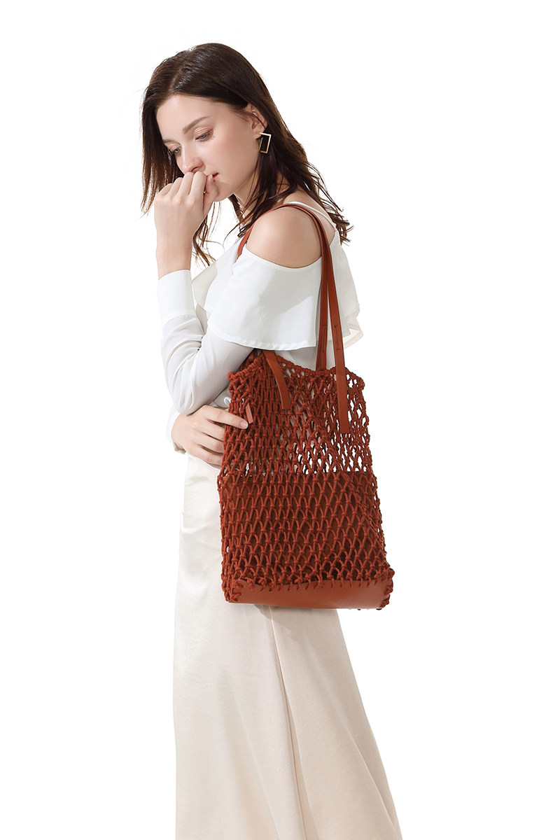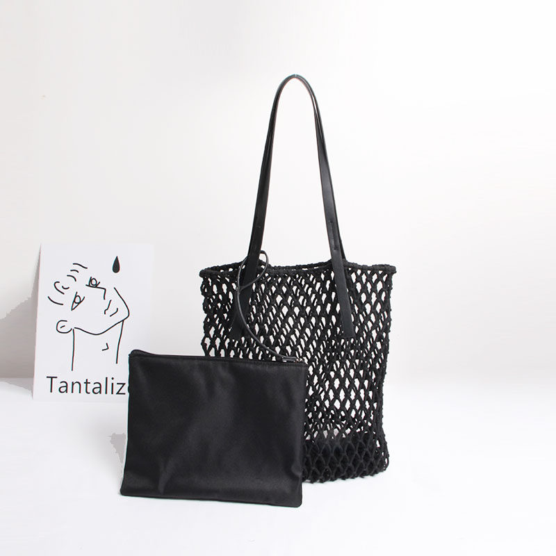 メッシュ部分から覗く中身が抜け感を演出し、夏のお出かけやビーチシーンにぴったりです。