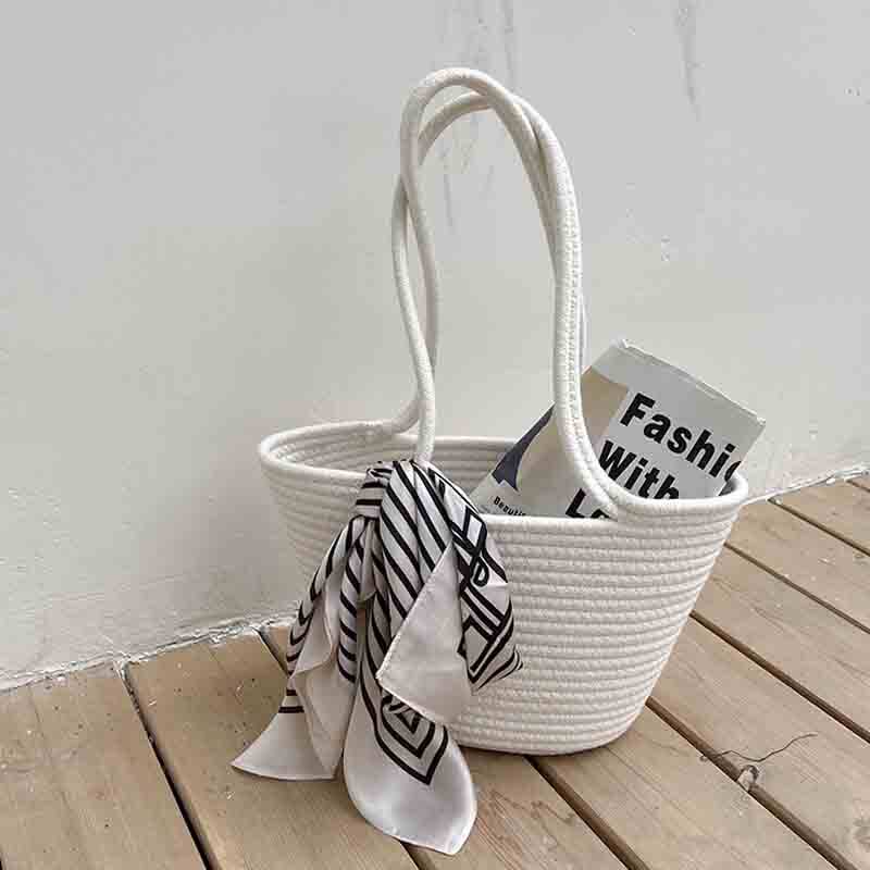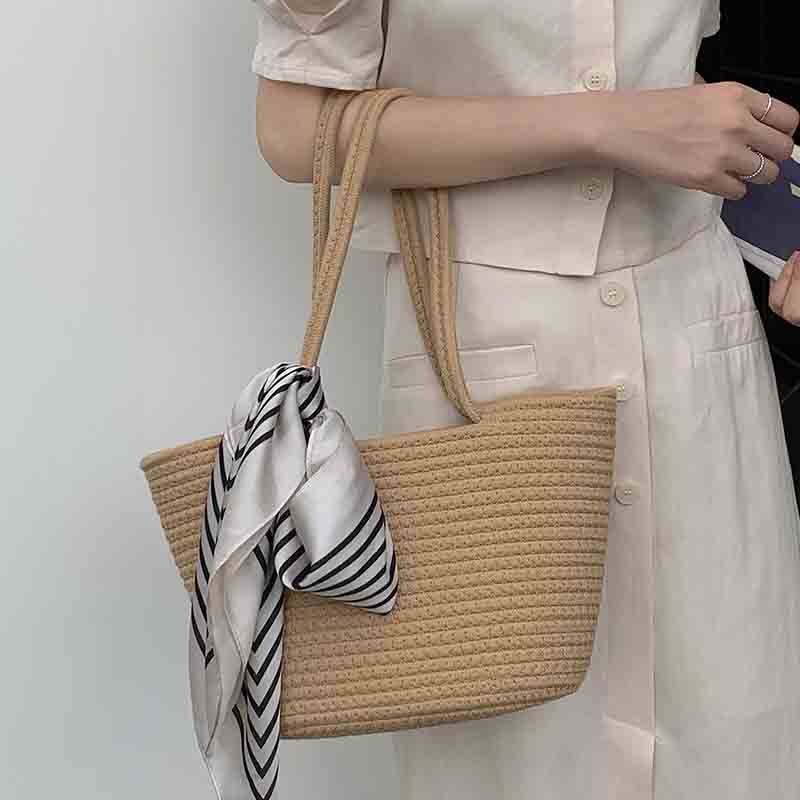 横方向に美しい畝編みが施されたトート型のカゴバッグです。 しっかりとした編み目が特徴で、デイリー使いに最適な収納力を備えています。 取り外し可能なスカーフ付きで、気分に合わせてアレンジが楽しめます。 軽量で持ち運びやすく、お出かけから普段使いまで幅広く活躍する実用的なアイテムです。 ナチュラルな素材感が大人の休日スタイルを演出します。