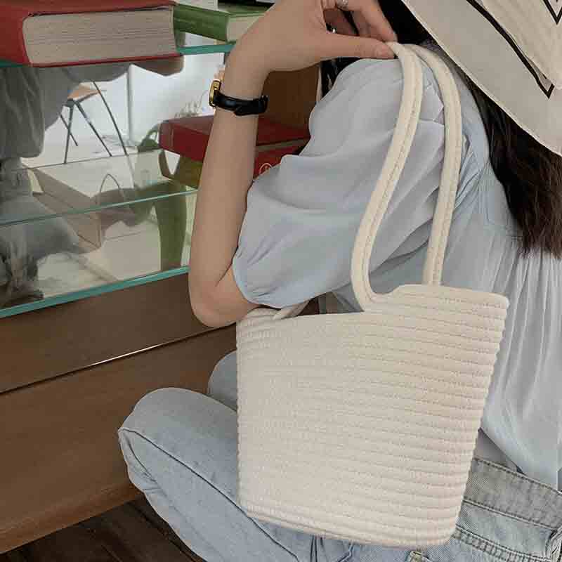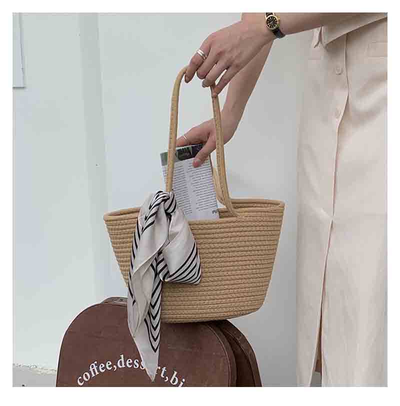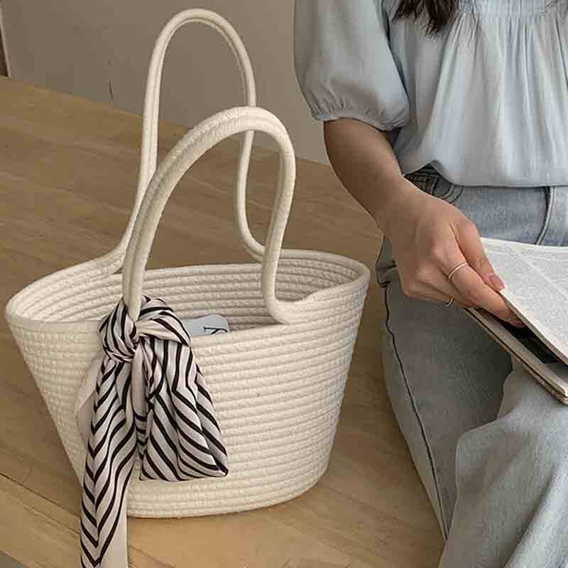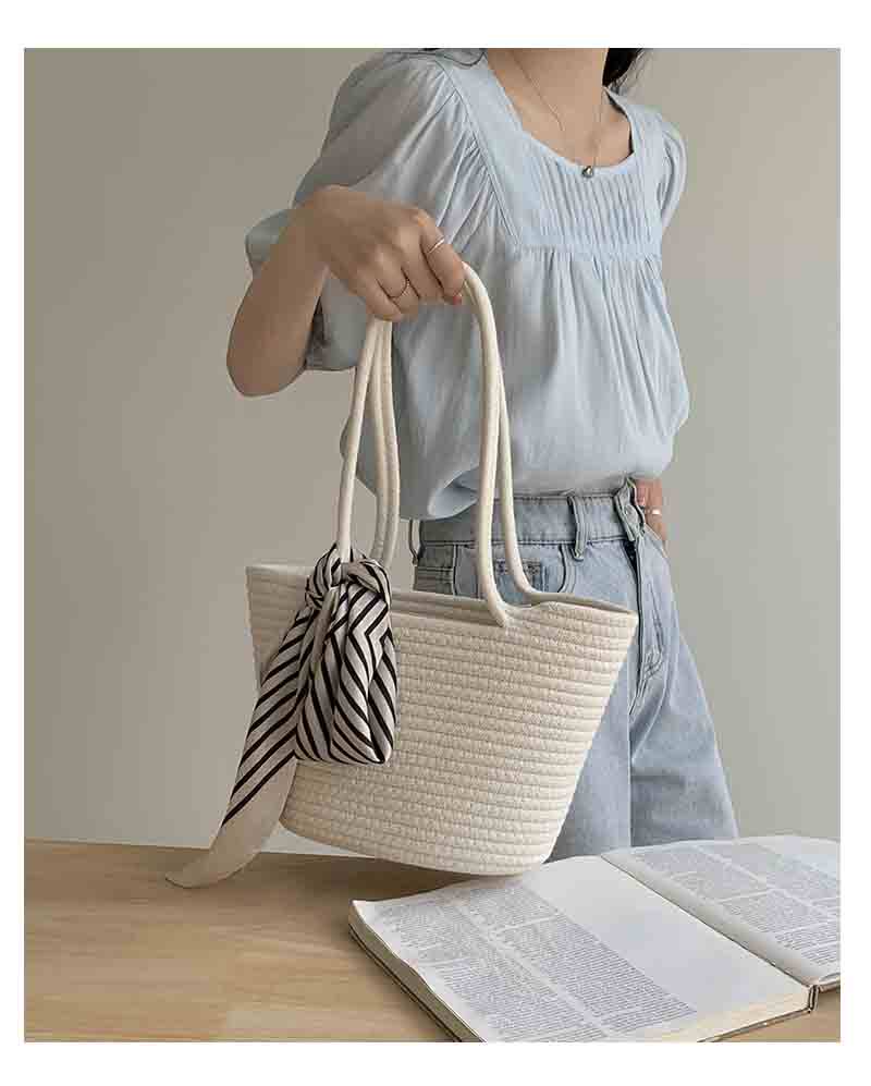 横方向に美しい畝編みが施されたトート型のカゴバッグです。