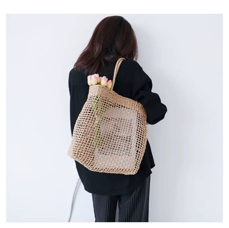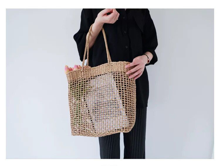 涼しげな透かし編みが魅力的なカゴバッグのトート型です。 フロントに配置されたポケットが使い勝手を高め、小物の整理に便利な仕様となっています。 軽やかな編み目が抜け感を演出し、カジュアルな装いにも上品な雰囲気をプラスします。 肩掛けしやすい持ち手の長さで、日常使いから休日のお出かけまで幅広く活躍するトート型のデザインです。 ナチュラルな風合いが季節を問わず楽しめる一品です。