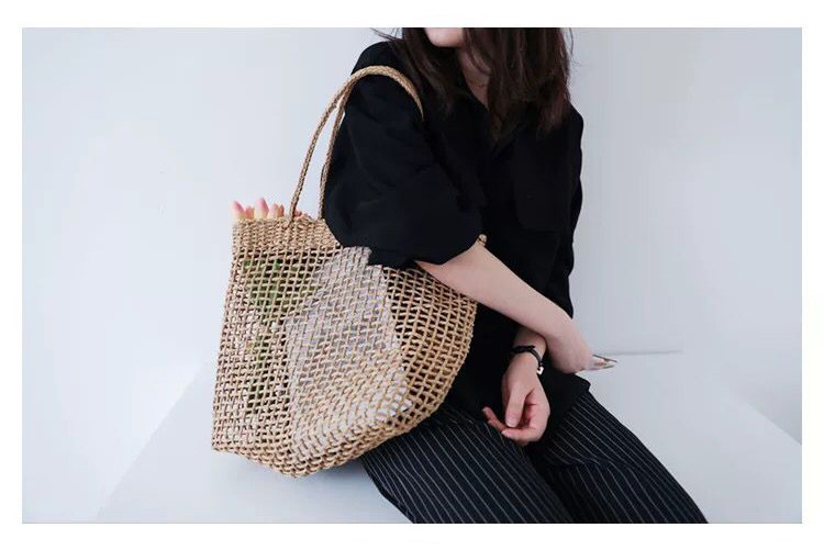 涼しげな透かし編みが魅力的なカゴバッグのトート型です。