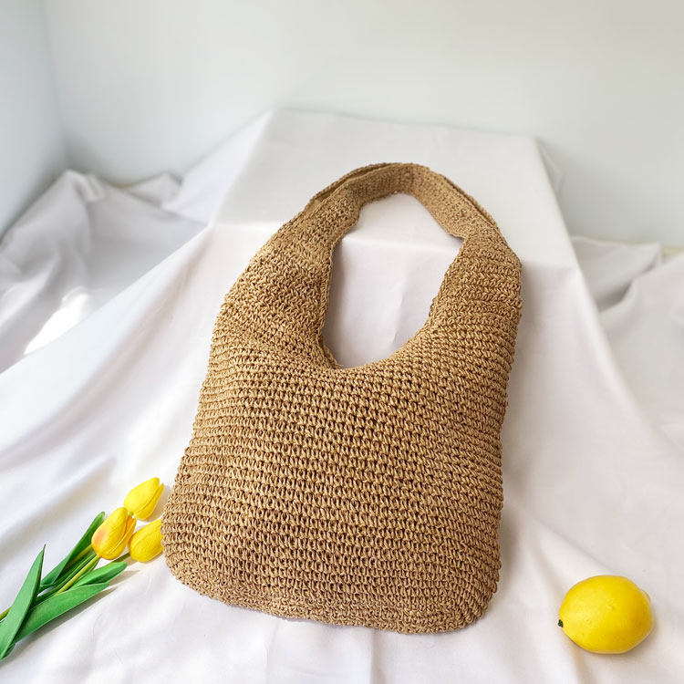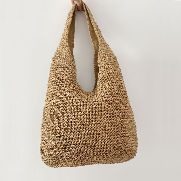 柔らかな素材を使用したカゴバッグで、ゆったりとしたトート型のシルエットが魅力です。 丁寧に編み込まれた網目模様が美しく、軽やかで扱いやすい仕上がりになっています。 肩掛けできるワンショルダータイプで、デイリー使いから休日のお出かけまで幅広く活躍します。 柔軟性があり荷物の出し入れもしやすく、実用性とデザイン性を兼ね備えた一品です。