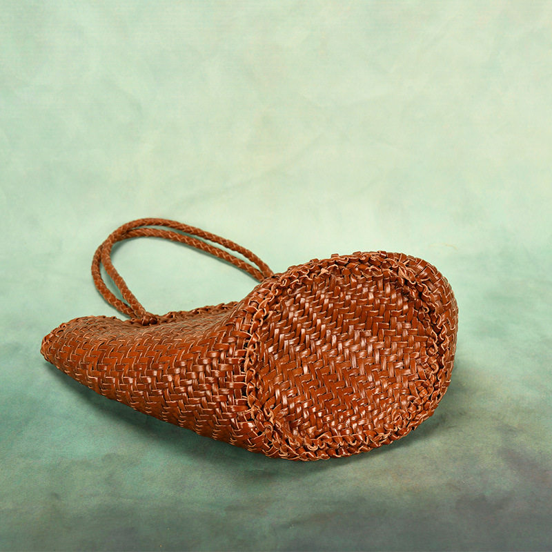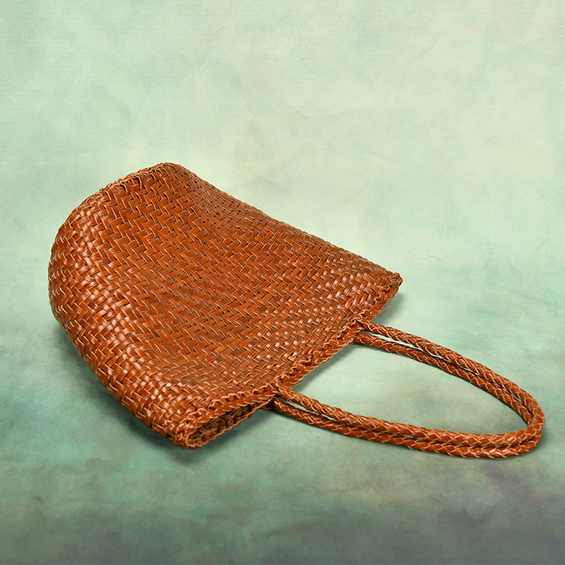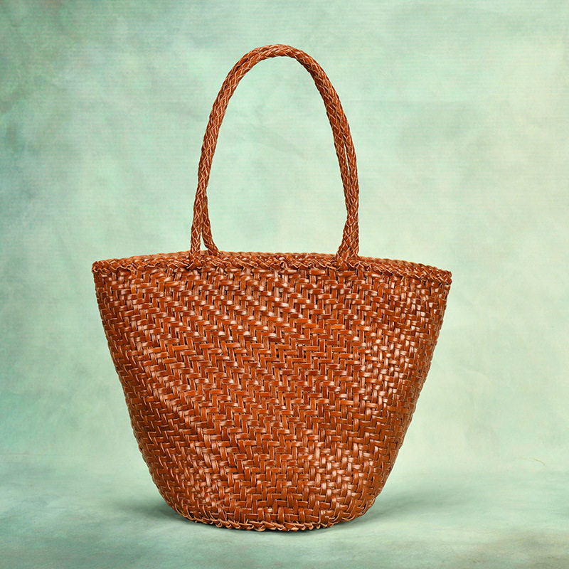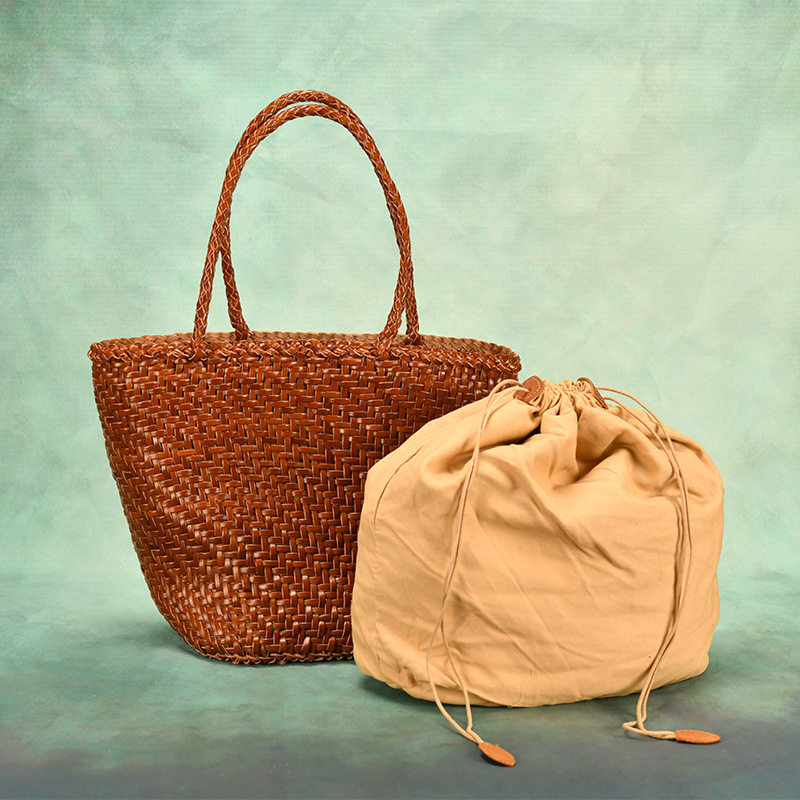 編み込みハンドルは肩掛けもしやすい長さで持ちやすく、収納力も抜群です。