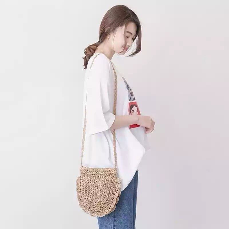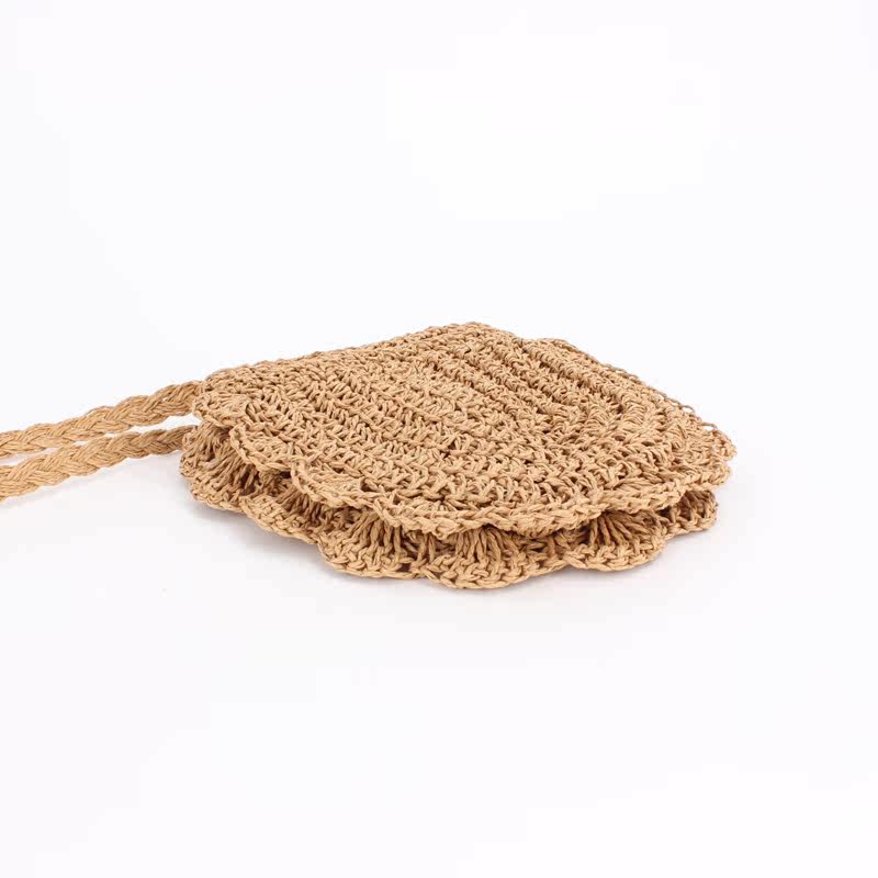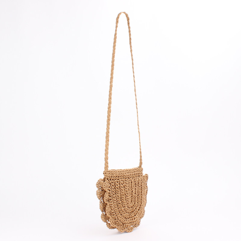 波型のスカラップデザインが特徴的なカゴバッグです。 丁寧に編み込まれた天然素材が温かみのある風合いを演出し、ナチュラルな雰囲気を醸し出します。 ショルダー型の長めの紐で肩掛けや斜め掛けが可能で、両手が自由に使えて便利です。 コンパクトなサイズ感ながら必需品はしっかり収納でき、お出かけやお散歩などデイリー使いに最適な一品です。