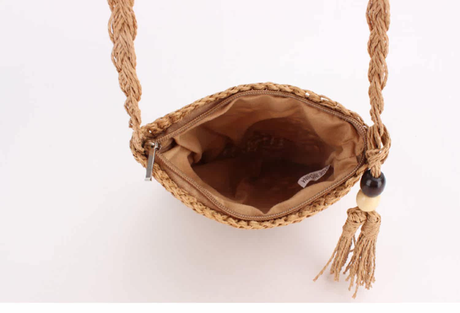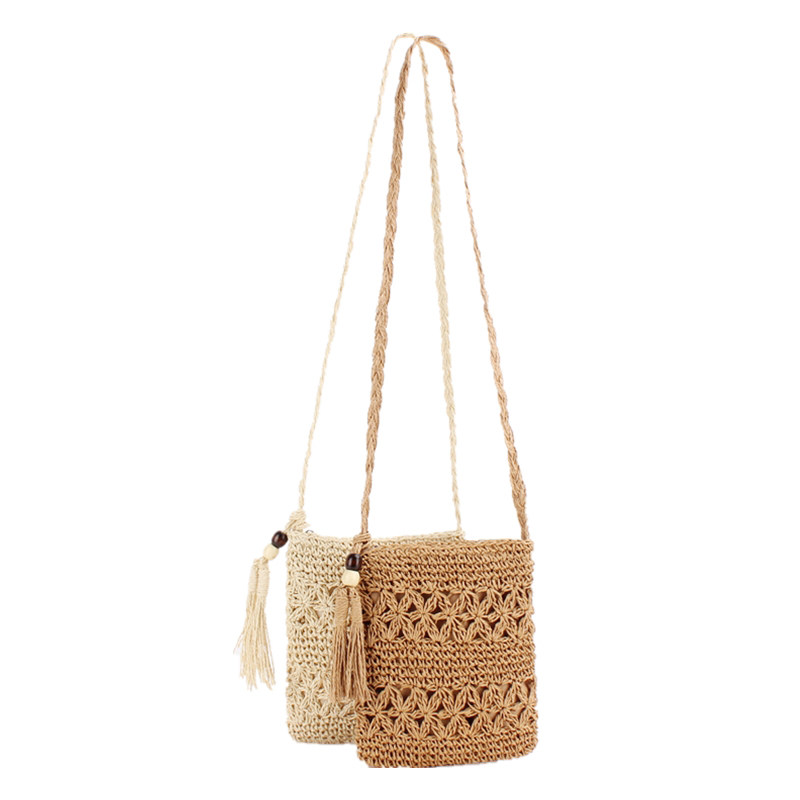 編み込まれた天然素材の風合いと、サイドに揺れるタッセルがアクセントになり、夏のお出かけやリゾートシーンにぴったりです。