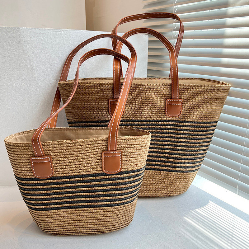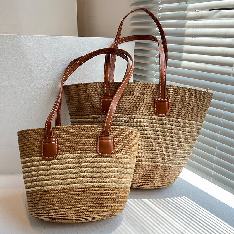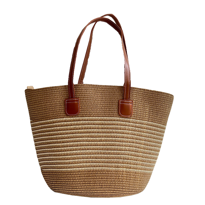 上質な革製の持ち手が大人の品格を演出するトート型のカゴバッグです。