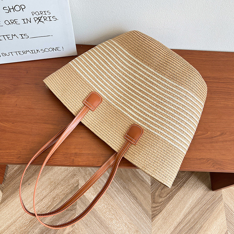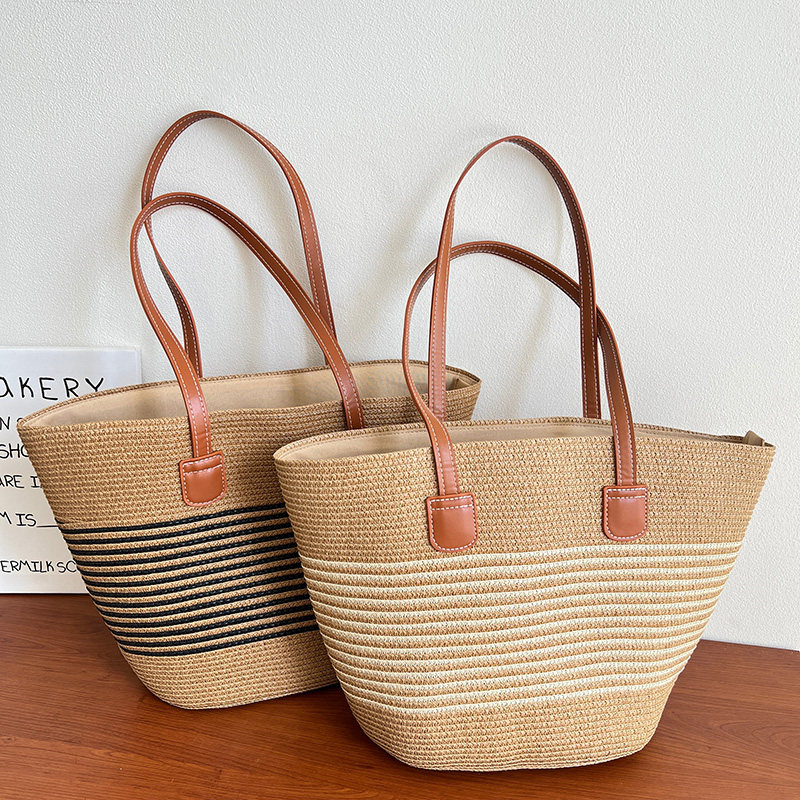 丁寧に編み込まれたボーダー模様が立体感を生み出し、ナチュラルな風合いが魅力的です。