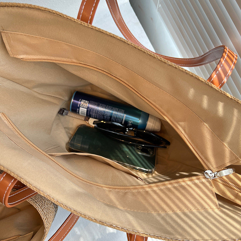 内側にはファスナー付きポケットが備わり、スマートフォンや小物類もすっきり収納できます。