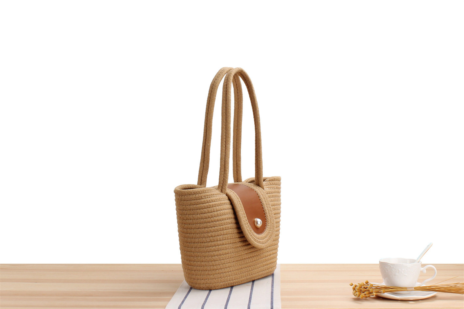 丁寧に編み込まれた天然素材の風合いが優しく、ナチュラルな雰囲気を演出します。