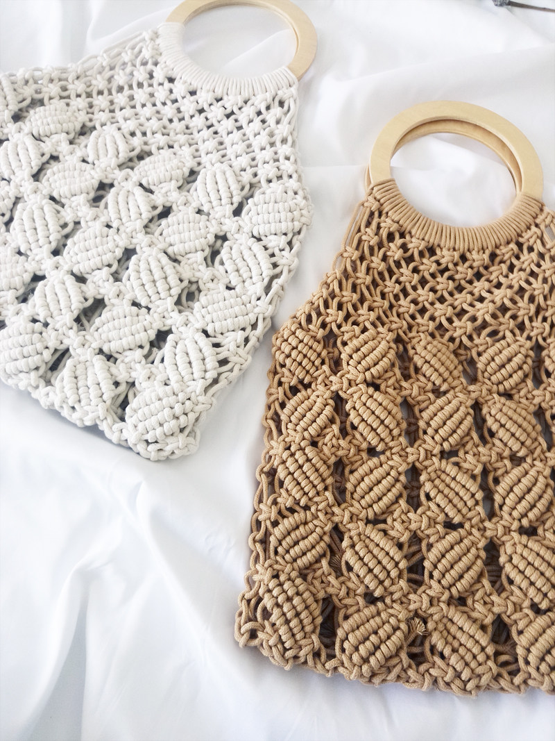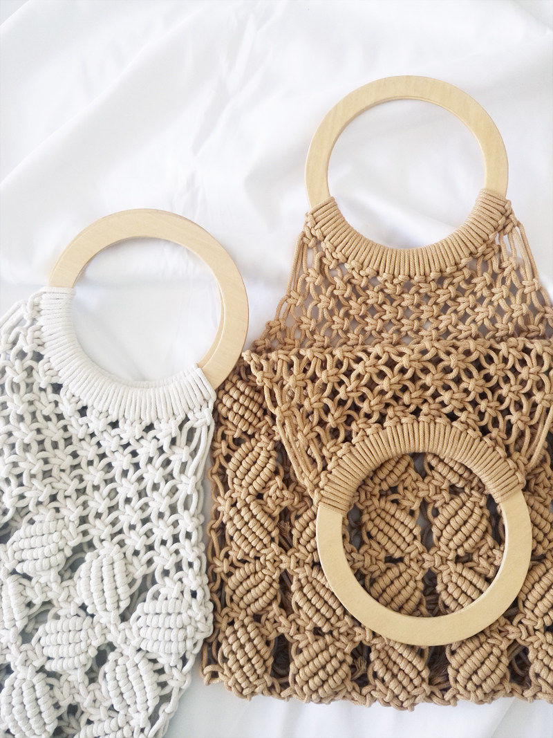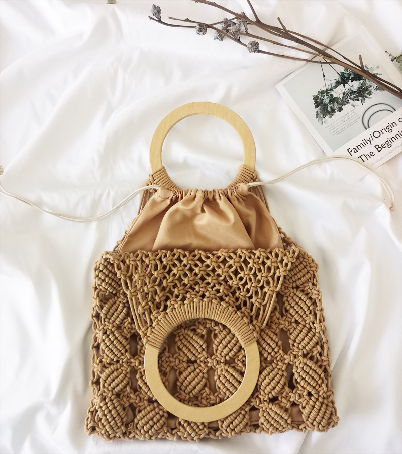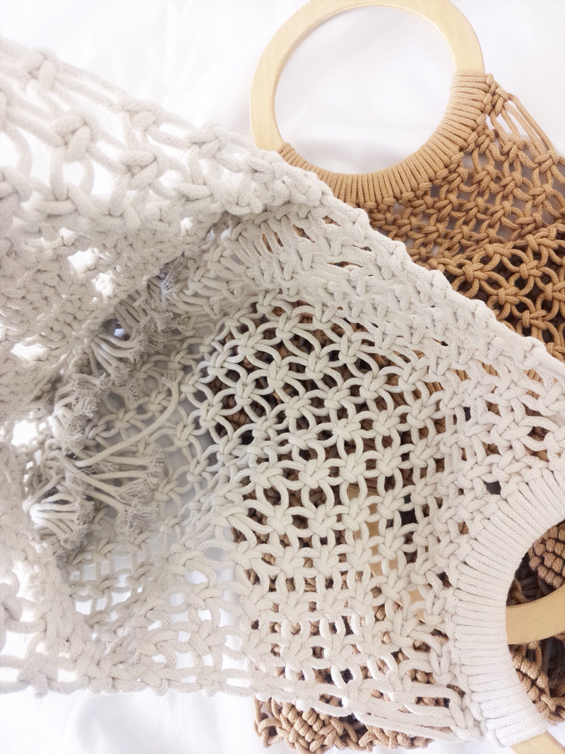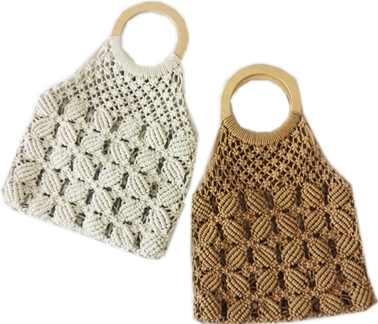 丁寧なマクラメ編みが美しいカゴバッグのハンドバッグ型です。