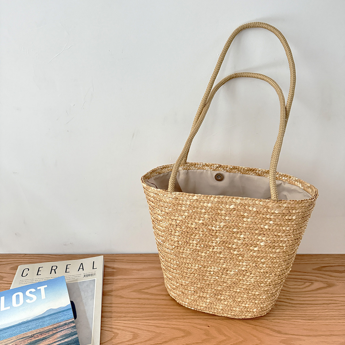 ナチュラルな素材を丁寧に編み込んだカゴバッグのトート型デザインです。