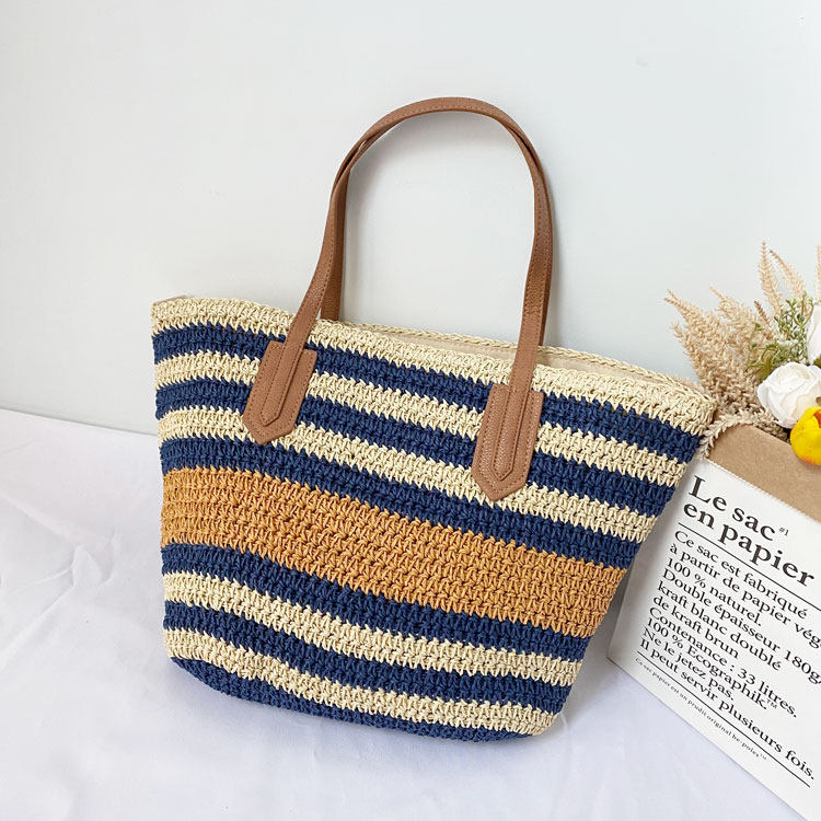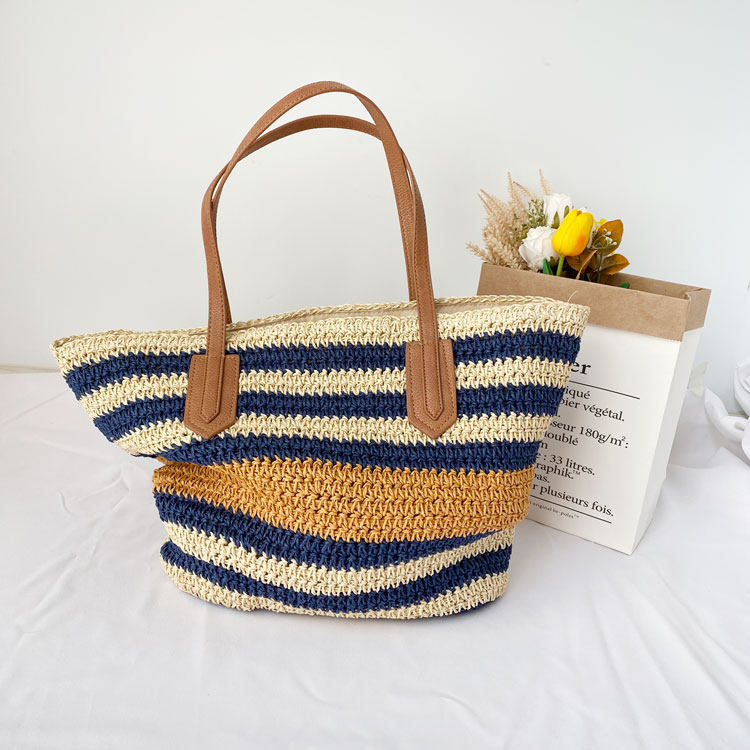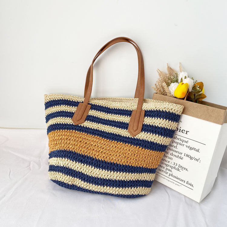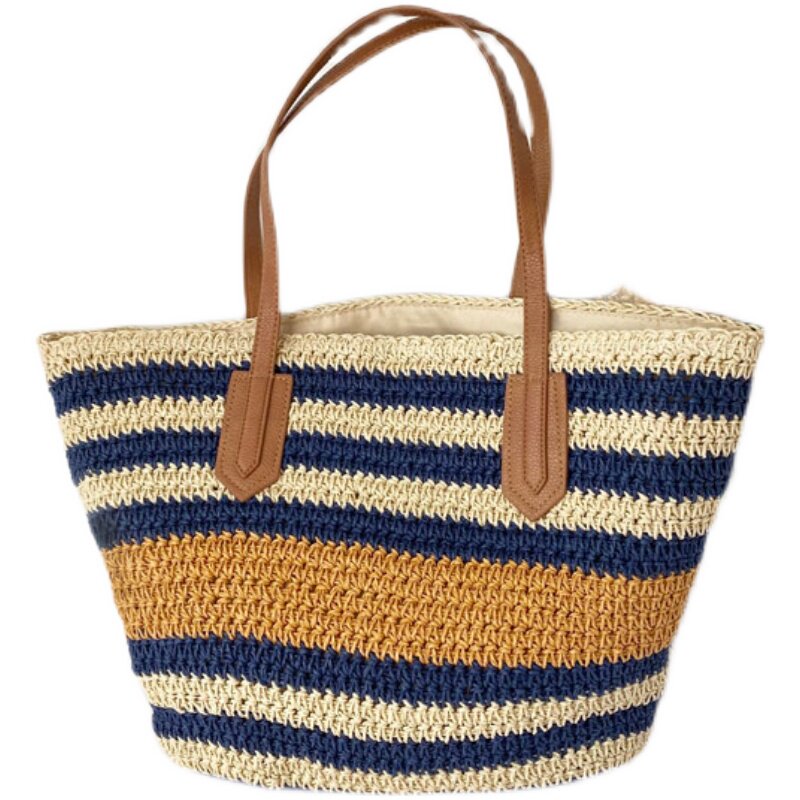 爽やかなボーダー柄が魅力的なカゴバッグです。 丁寧に編み込まれた天然素材と持ち手の組み合わせが上品な印象を与えます。 トート型の広めの開口部で荷物の出し入れもスムーズに行えます。 普段使いはもちろん、海辺のお出かけや夏のレジャーシーンにもぴったりなデザインです。 収納力も抜群で、日常のお買い物からお出かけまで幅広くお使いいただけます。