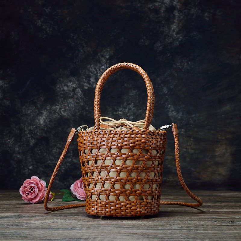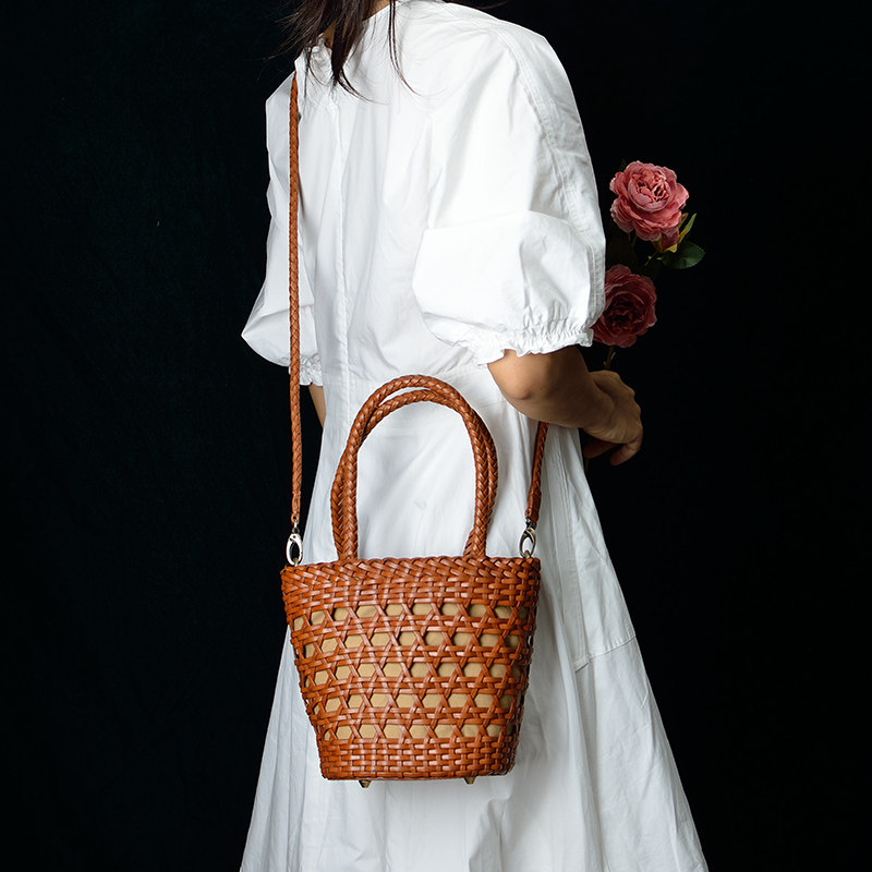 編み込まれた持ち手と取り外し可能な肩紐の二way仕様で、手持ちと斜め掛けの両方が楽しめます。