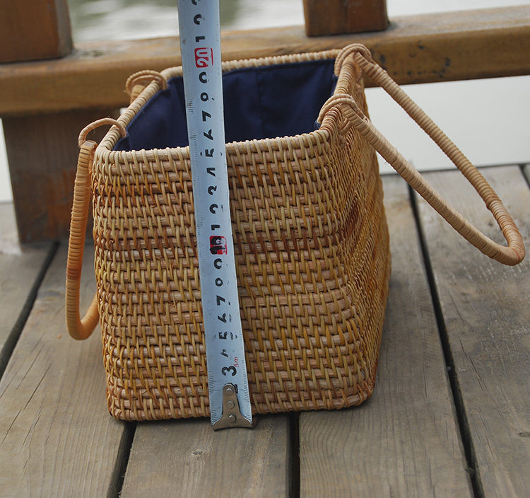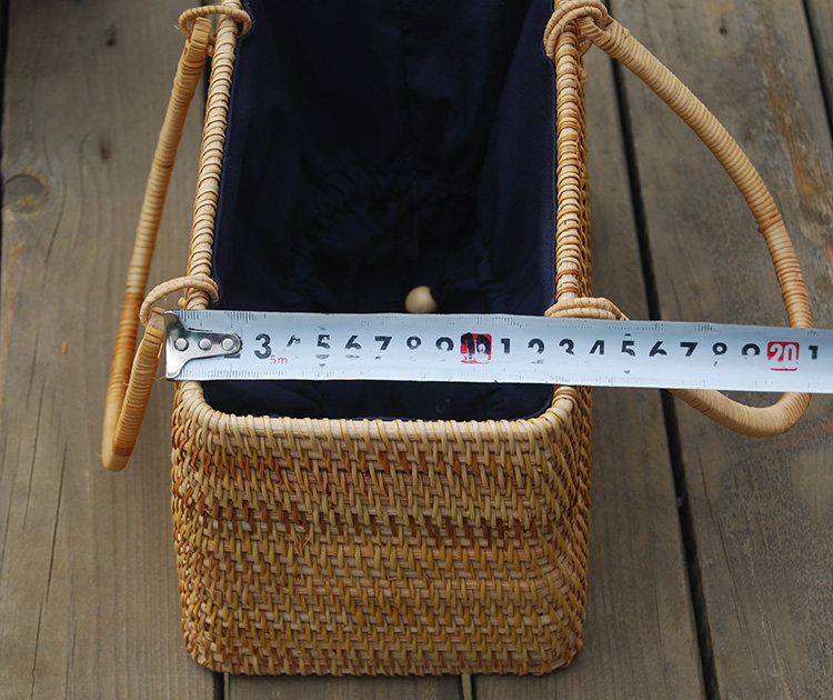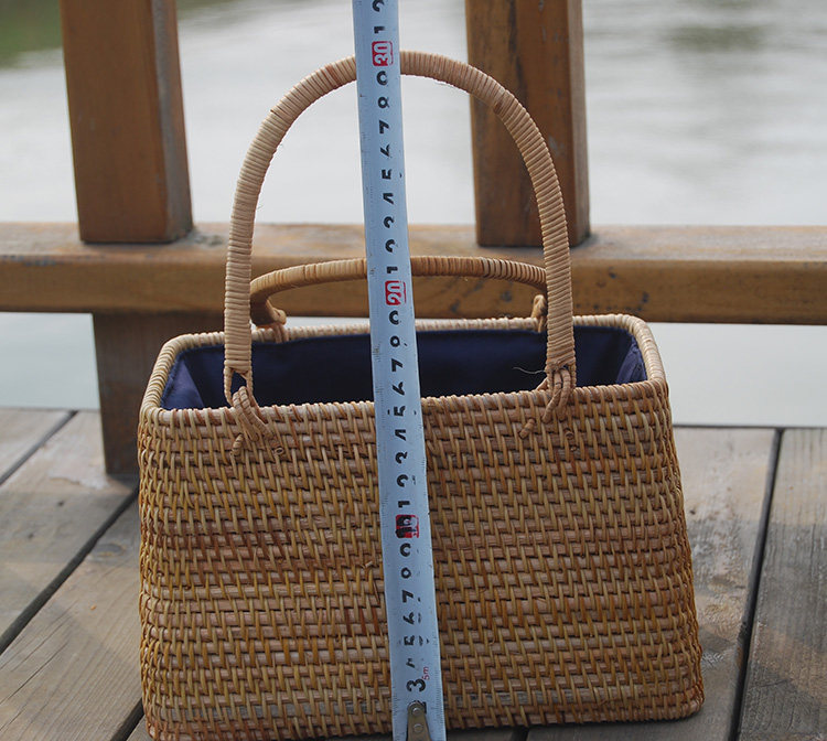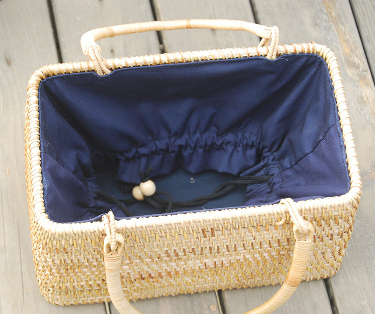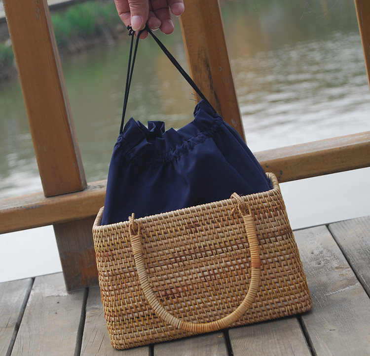 丁寧に編み上げられた天然素材のハンドバッグ型カゴバッグです。 内側には巾着袋が付いており、中身をしっかり保護できる実用的なデザインが魅力です。 持ち手は手に馴染みやすい丸みのある仕上がりで、長時間の持ち歩きも快適です。 ナチュラルな風合いが季節を問わず使いやすく、普段使いから旅行まで幅広く活躍します。 巾着の開閉も簡単で、機能性とデザイン性を兼ね備えたカゴバッグです。