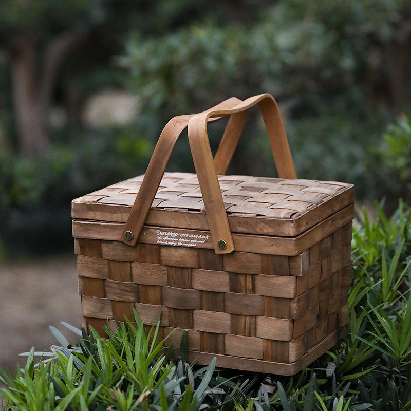 美しい編み込み模様が魅力的な蓋付きのカゴバッグです。ハンドバッグ型のデザインで、ピクニックやお出かけに最適な実用性の高いアイテムとなっています。 天然木材を丁寧に編み上げた温もりある仕上がりで、しっかりとした蓋と金具が大切な荷物を守ります。 持ち手は手に馴染みやすく、持ち運びも快適です。日常使いから特別な日のお出かけまで幅広くお使いいただけます。